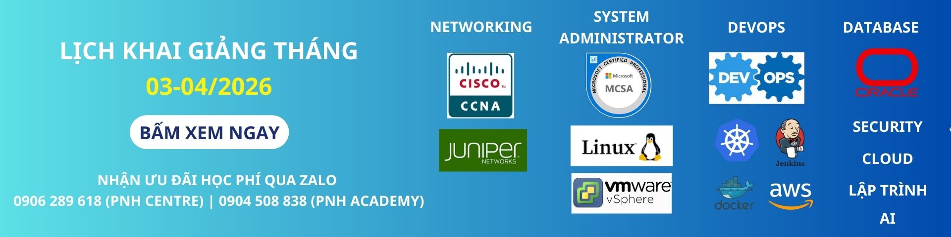 Các khóa học và chứng chỉ nghề nghiệp CNTT quốc tế về nền tảng và vận hành như Network, Cloud, DB, Server, Linux, Devops, Security…là xu hướng yêu cầu tất yếu đối với nhân sự ngành CNTT.