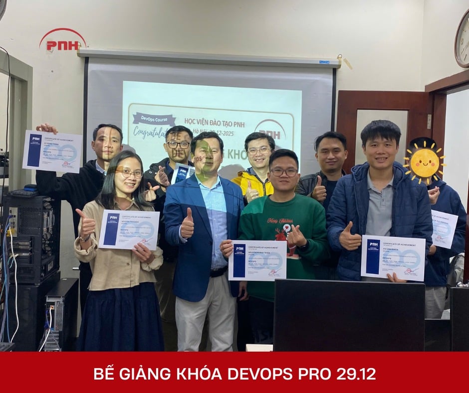 Học viện PNH trân trọng thông báo lễ bế giảng khóa học DevOps chính thức khép lại sau 42 buổi học tập và rèn luyện nghiêm túc.