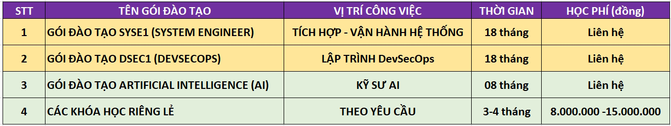 CÁC GÓI KHÓA HỌC CNTT TẠI PNH