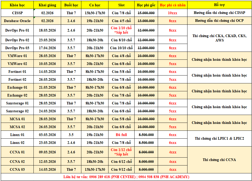 (Lịch khai giảng được cập nhật ngày 02/03/2026)