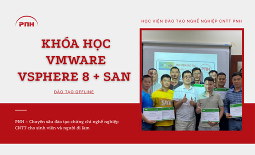Trong kỷ nguyên số hóa ngày nay, ảo hóa và lưu trữ mạng (SAN Storage) trở thành các công nghệ cốt lõi không thể thiếu trong các trung tâm dữ liệu và hạ tầng IT của doanh nghiệp. Nhằm đáp ứng nhu cầu ngày càng tăng cao về nhân lực chất lượng cao trong lĩnh vực này, học viện PNH tự hào giới thiệu Khóa Học Ảo Hóa VMware và SAN Storage, một chương trình đào tạo toàn diện giúp bạn trang bị những kiến thức và kỹ năng cần thiết để làm chủ các công nghệ ảo hóa và lưu trữ hiện đại.